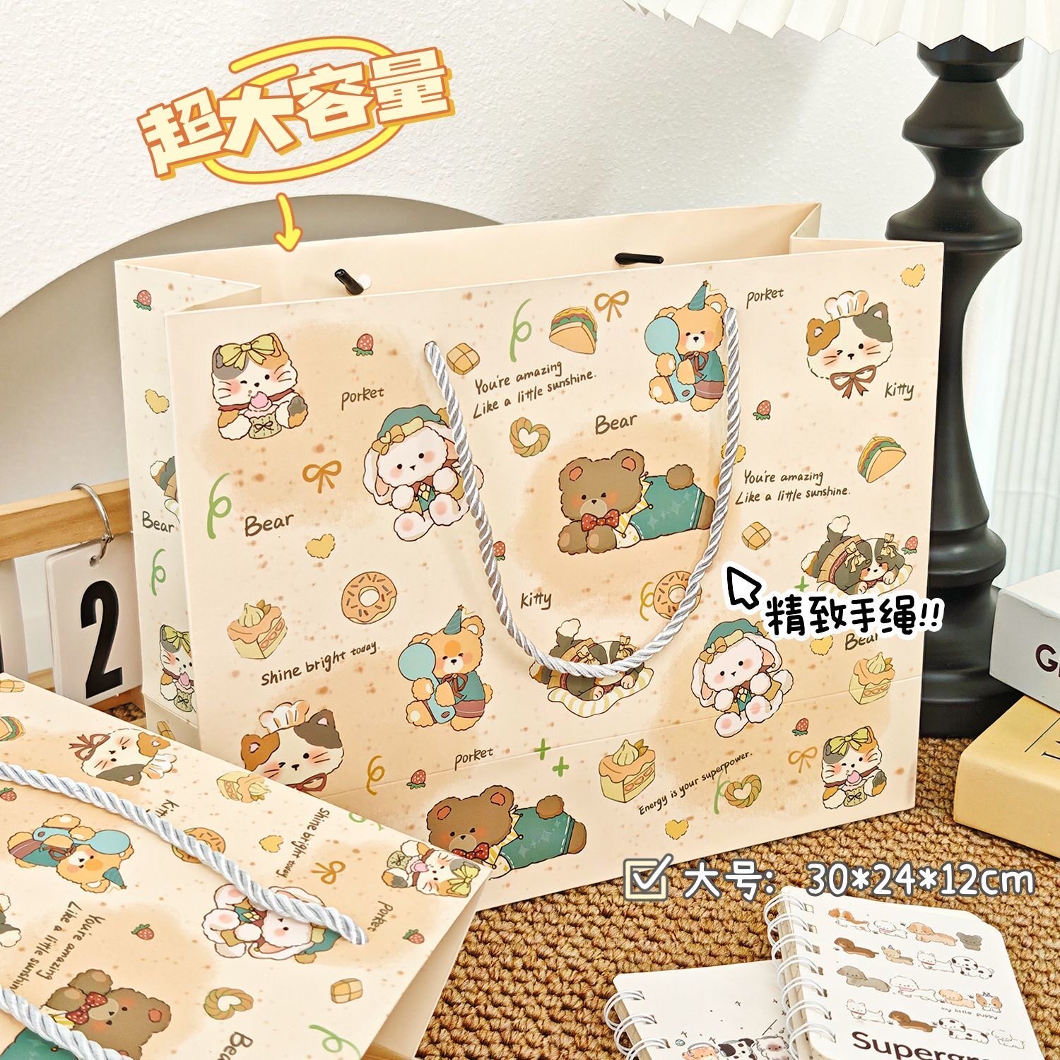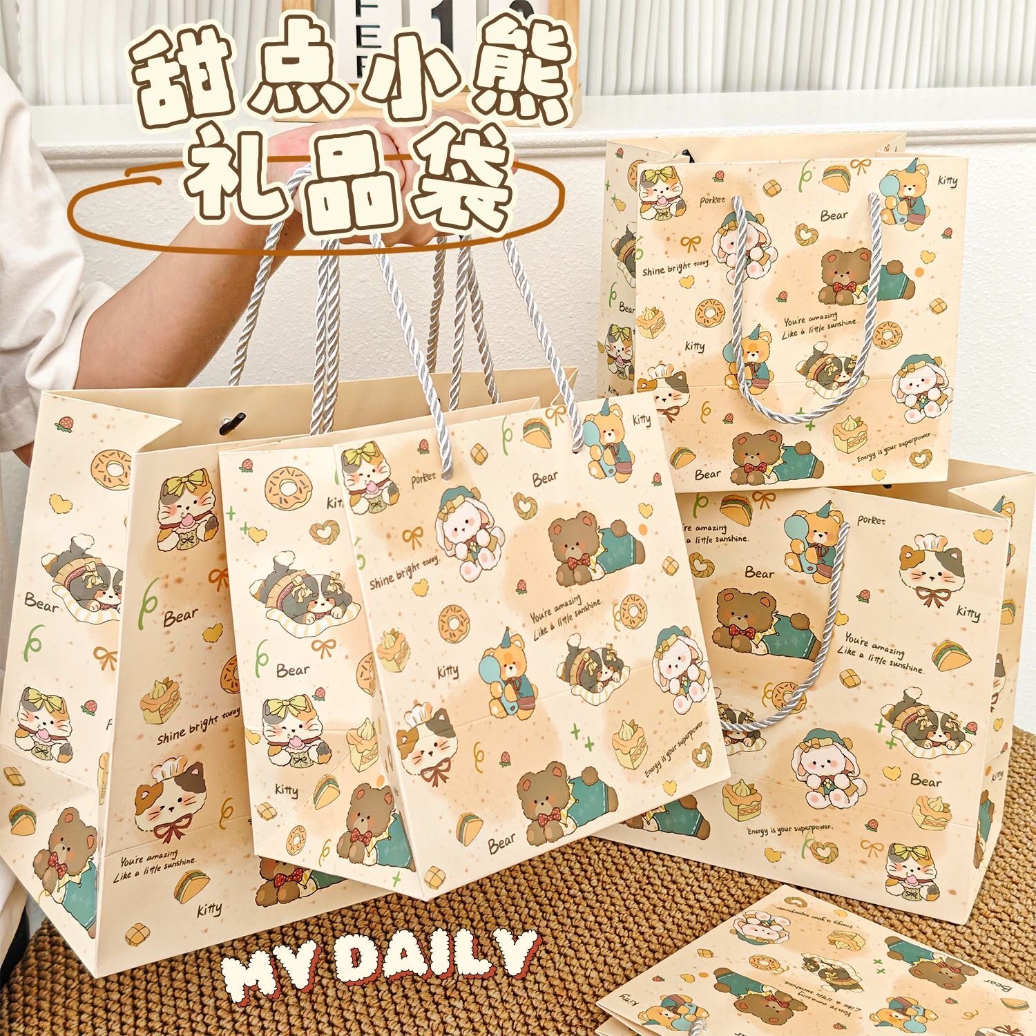 甜点小熊礼品袋高颜值可爱卡通大容量手提袋简约高级感礼物包装袋