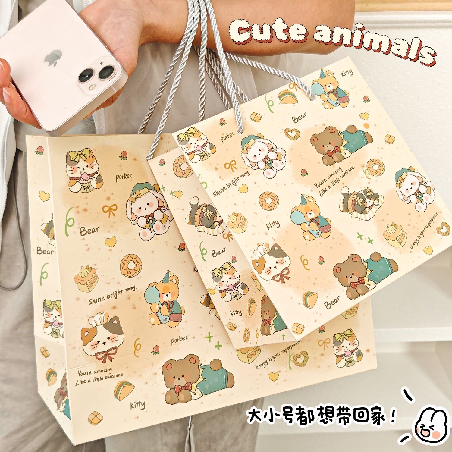 推荐理由:甜点小熊礼品袋高颜值可爱卡通大容量手提袋简约高级感礼物包装袋