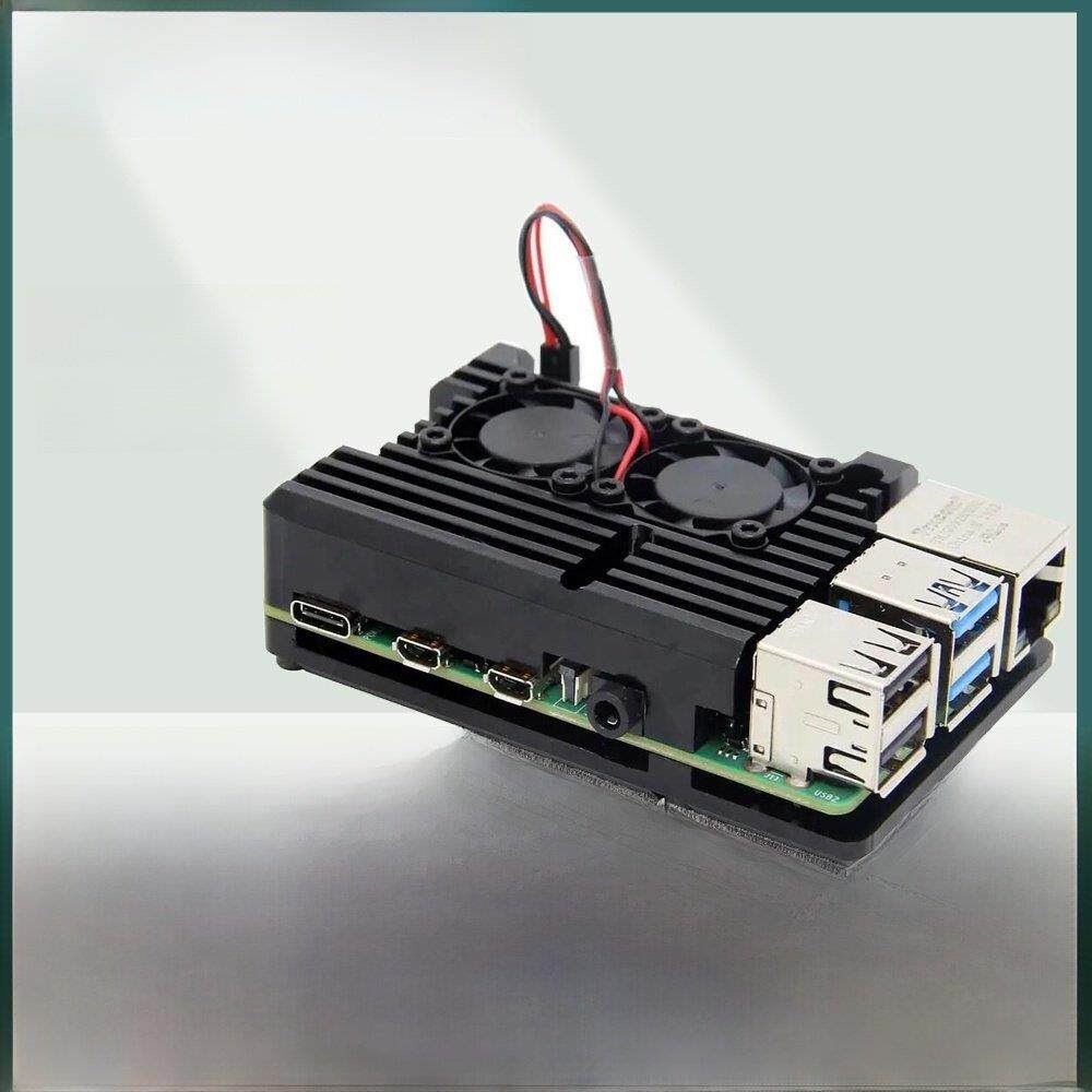 第四代B型树莓派4B铝合金外壳,双风扇冷却