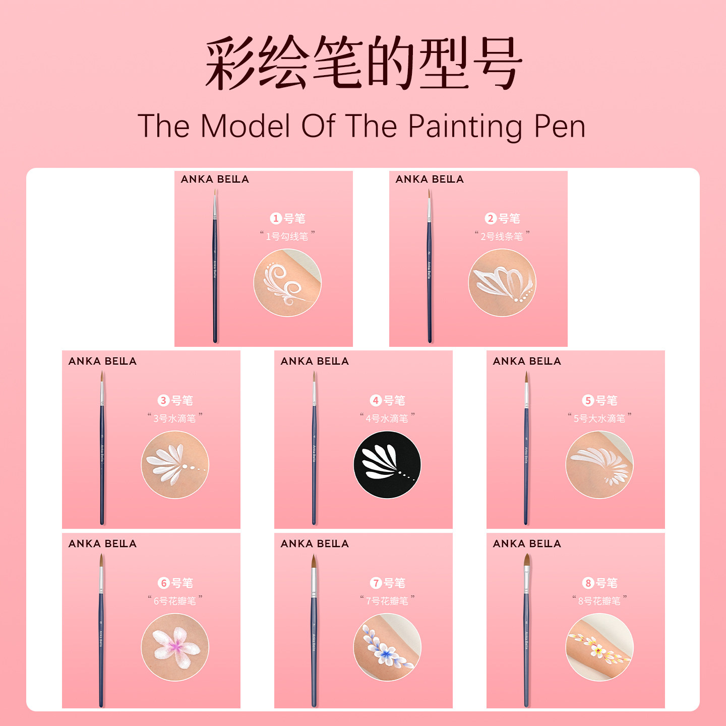 Anka Bella儿童面部彩绘笔脸部专用笔刷压花笔勾线花瓣专业颜料笔
