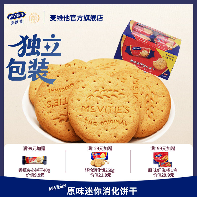 Mcvities麦维他进口全麦原味迷你消化饼干351g粗粮独立包装