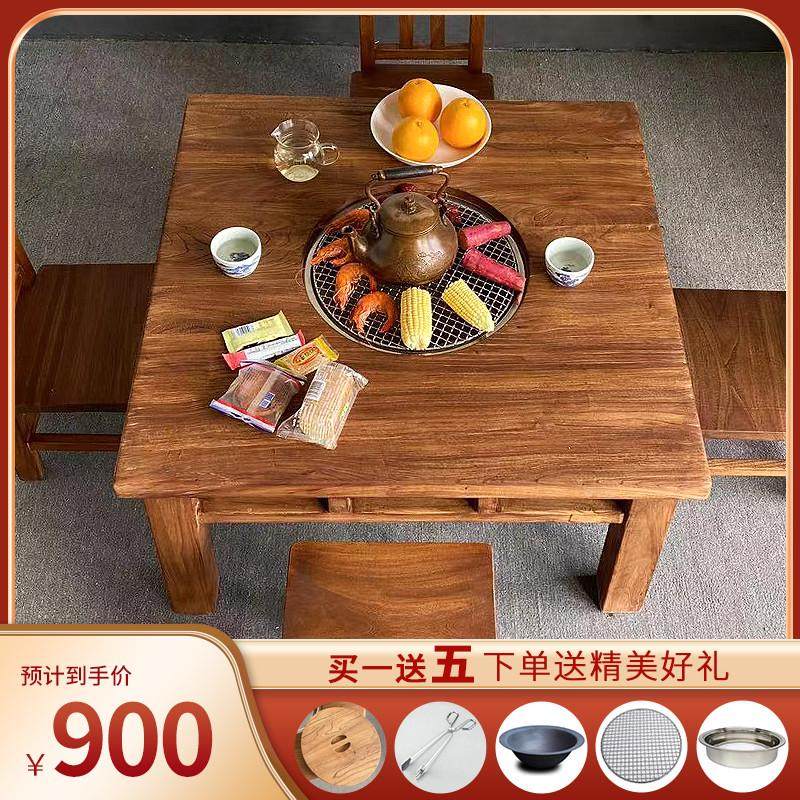 榆木火锅桌实木老门板家用多功能方桌民宿户外简约实用烧烤煮茶桌