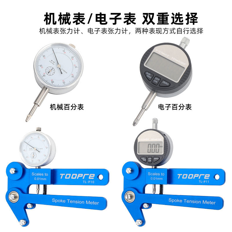 TOOPRE自行车辐条张力计数显车圈校正工具机械轮组钢丝调圈测量器