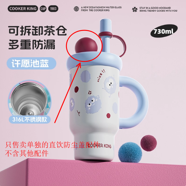 炊大皇球球保温杯730ml系列直饮防尘盖配件(单个装)QQ73A系列配