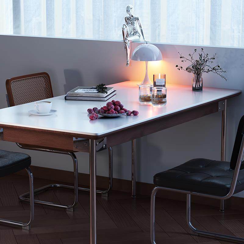 2025新款中古长方形不占空间的餐桌奶油风家用实木岩板岛台小户型