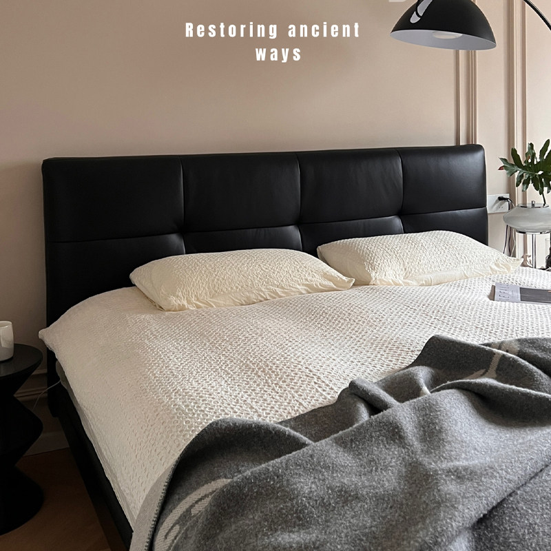 意式极简真皮床小户型主卧薄床头储物床黑色巧克力榉木实木双人床