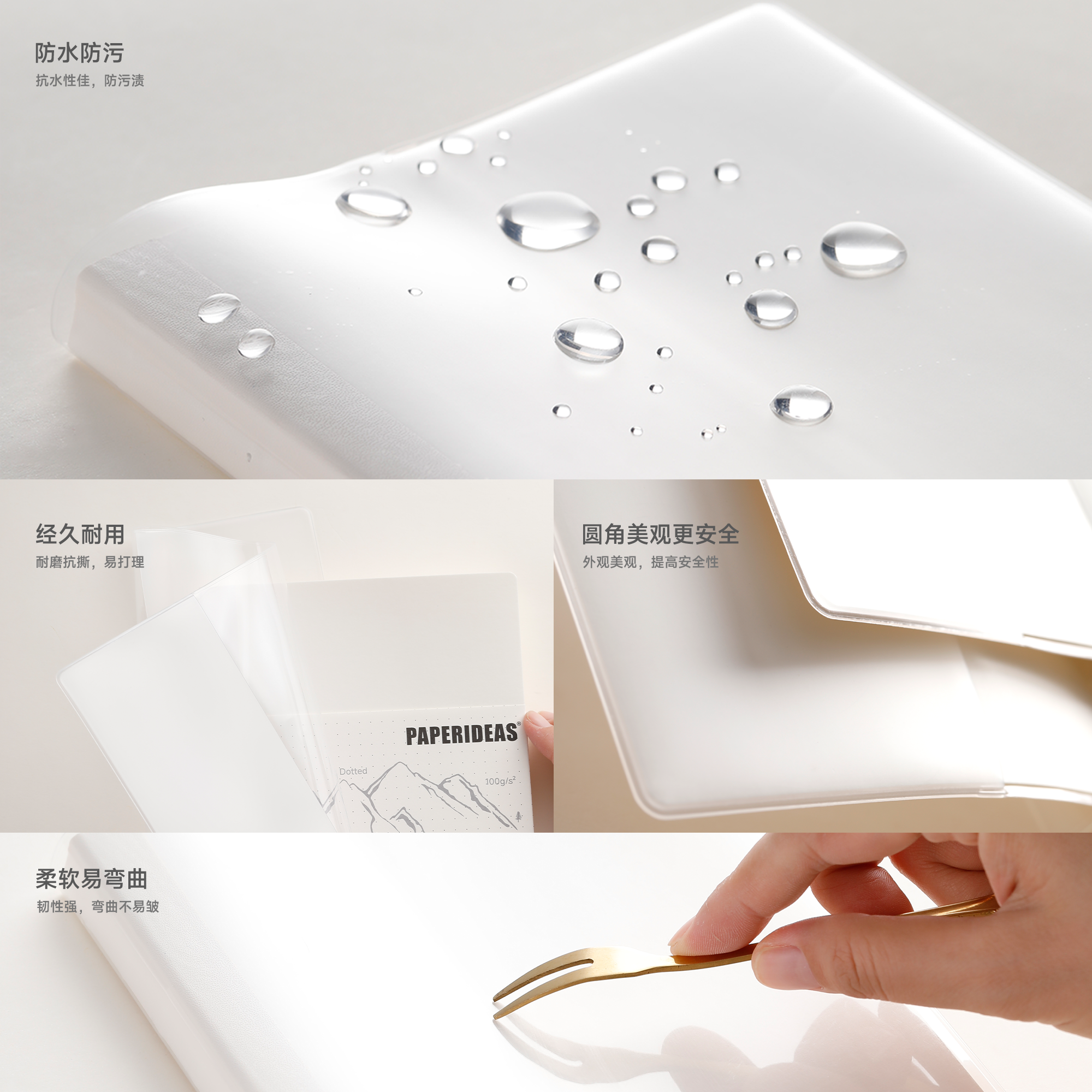 推荐理由:透明磨砂款PVC活口款书衣封套多种尺寸款式适配店铺三年五年手账日程本A5A6A7记事本weeks防水耐磨软胶封套