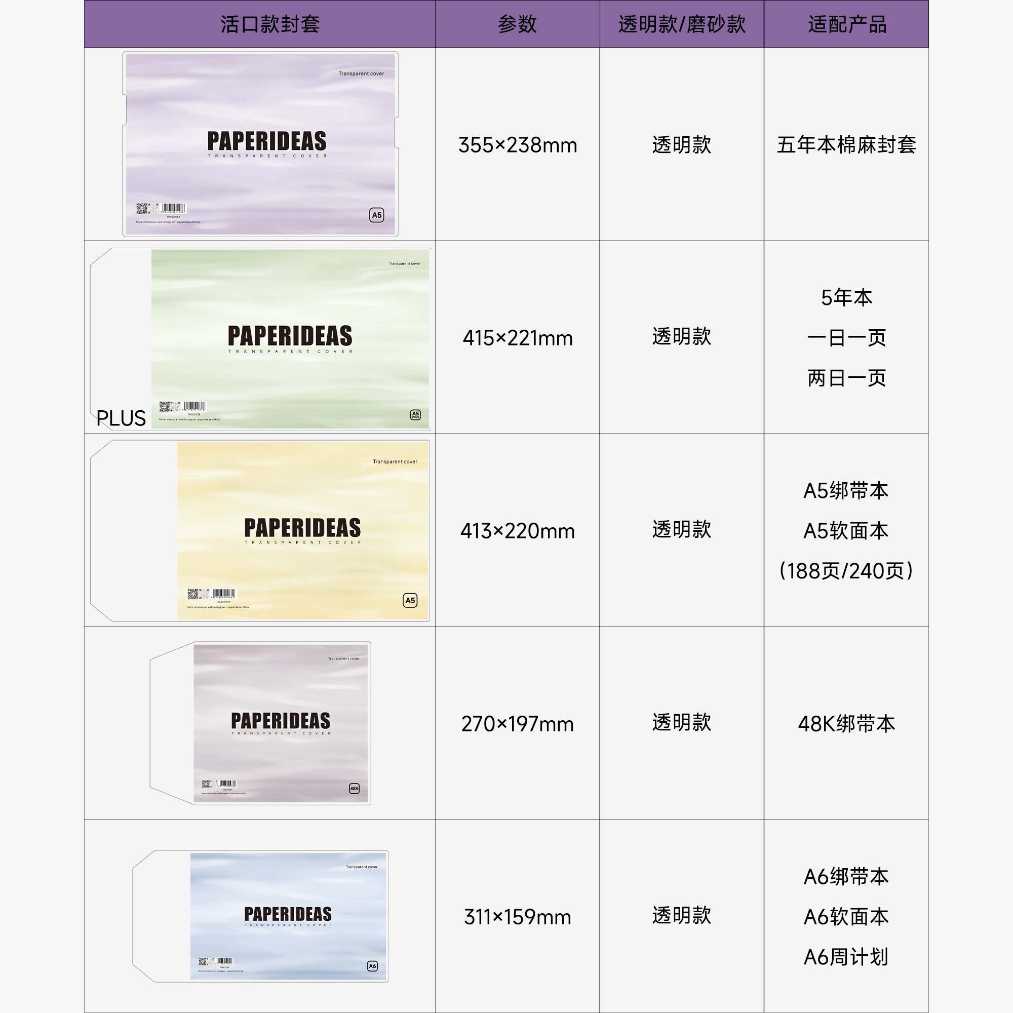 透明磨砂款PVC活口款书衣封套多种尺寸款式适配店铺三年五年手账日程本A5A6A7记事本weeks防水耐磨软胶封套
