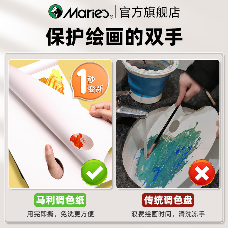 马利旗舰店正品油画调色板一次性调色板纸美术调色板一次性调色纸调色板油画盘美术生水粉调色纸丙烯调色盘