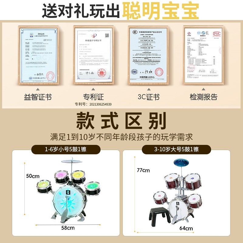 推荐理由:儿童架子鼓玩具男孩敲打鼓1一6岁家用初学宝宝乐器生日3圣诞5礼物