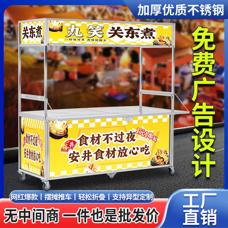 摆摊小推车可折叠商用网红夜市多功能户外小吃展示架可携式手推