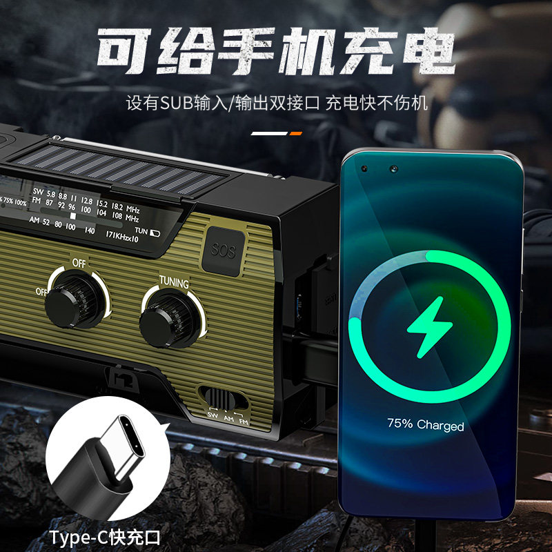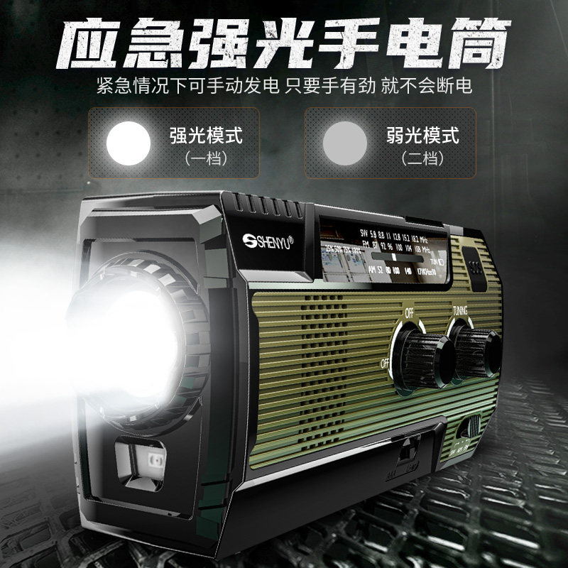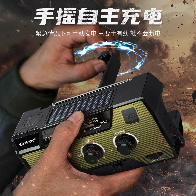 太阳能手摇发电收音机应急手电筒强光超亮多功能救援设备战备防灾