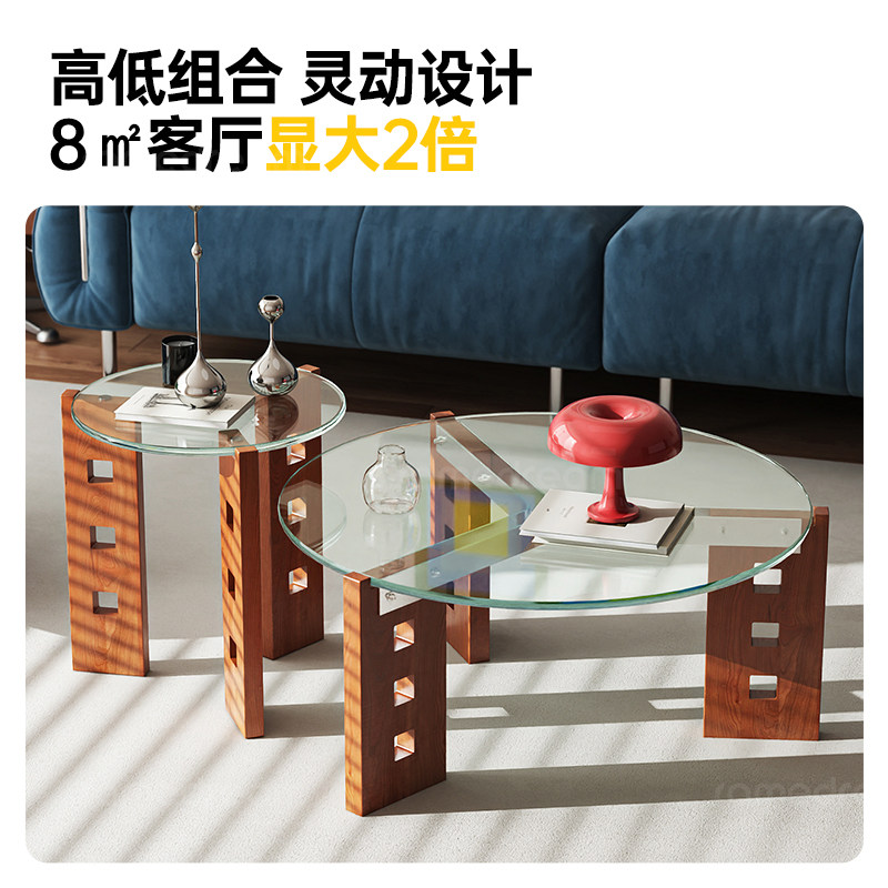 包豪斯玻璃茶几客厅家用2025新款小户型中古组合茶台实木阳台茶桌