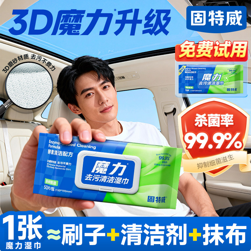 推荐理由:固特威汽车内饰清洗剂免水洗车专用强力去污除胶去胶清洁湿巾神器