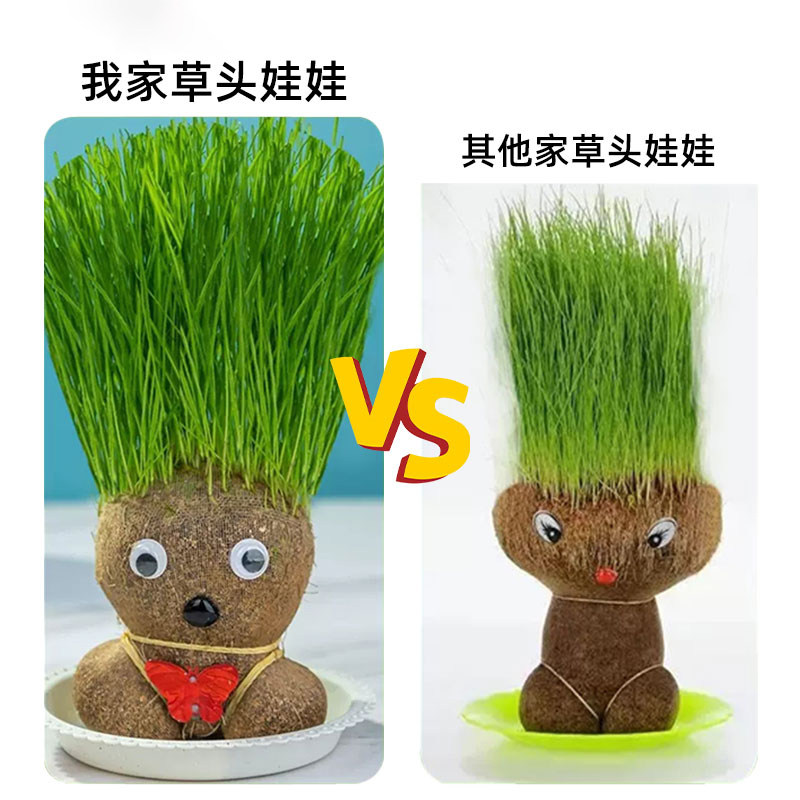 推荐理由:长草娃娃草头开花小盆栽植物头上头顶浇水种草幼儿园儿童水培绿植
