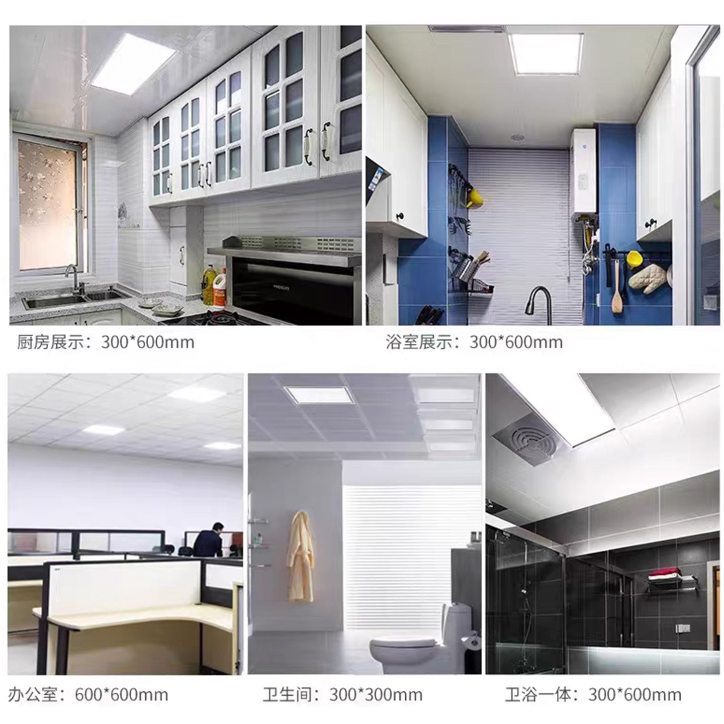led集成吊顶灯300 600办公室平板灯方形格栅嵌入式铝扣面板厨房灯