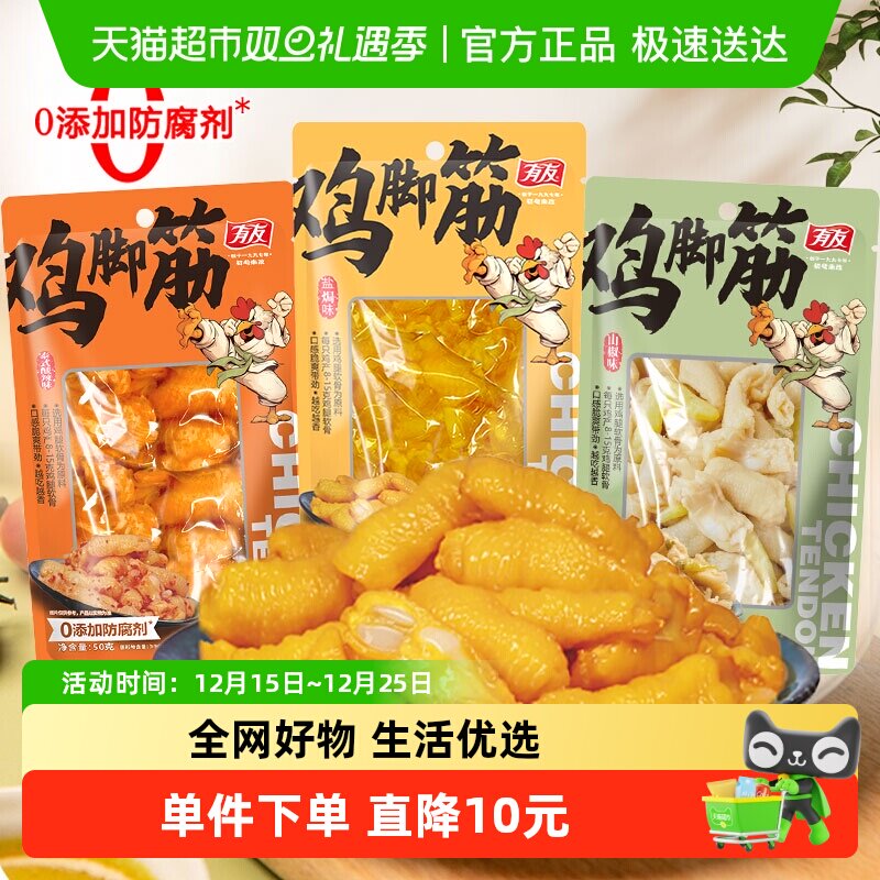 有友鸡脚筋山椒盐焗泰式酸辣味鸡肉熟零食品追剧解馋好吃美味