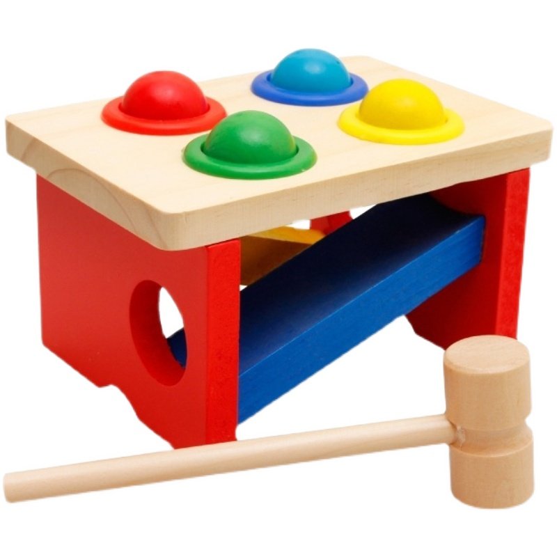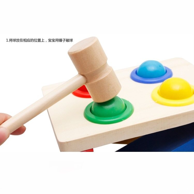 婴幼儿童玩具智力开发宝宝早教木质敲球台颜色配对敲打益智玩具