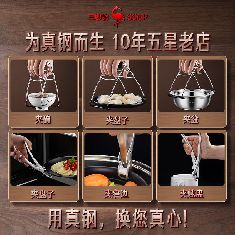 三四钢® 防烫夹厨房取盘夹提盘夹抓子夹盘器碗夹蒸菜蒸夹防滑夹子