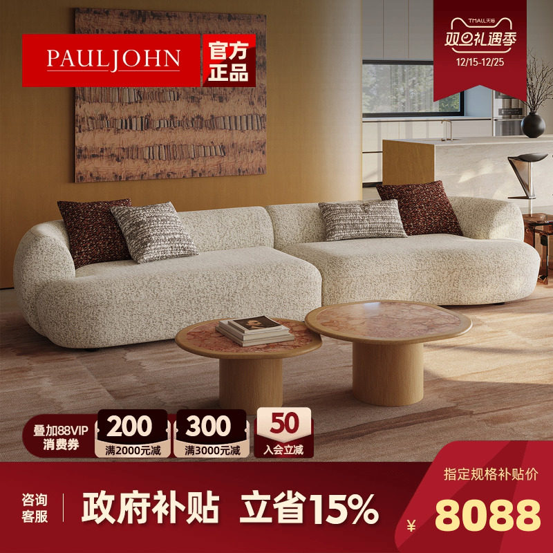 PAULJOHN进口雪尼尔绒弧形沙发别墅大平层老钱风客厅简奢布艺沙发
