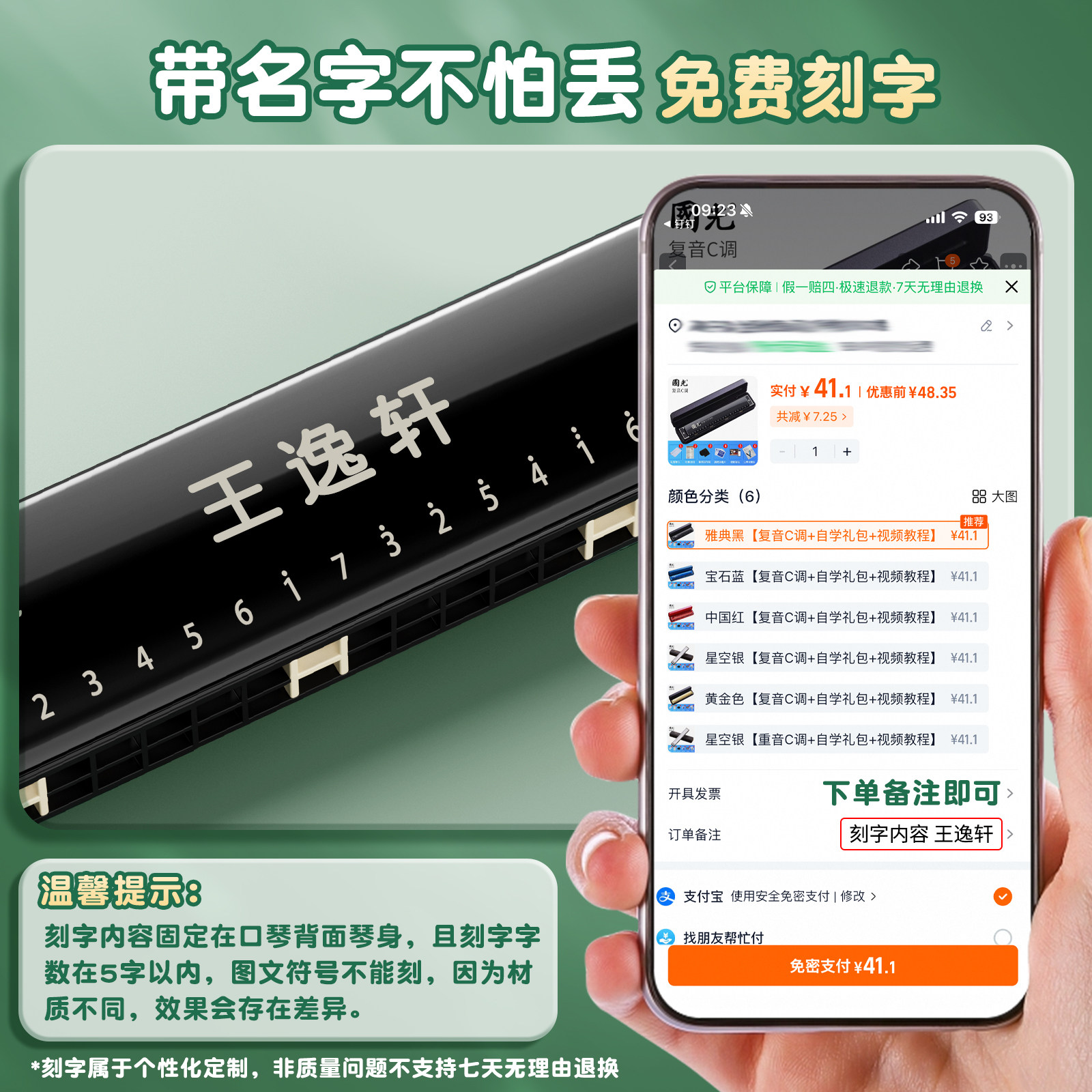 推荐理由:国光口琴24孔复音C调小学生专用初学者入门重音成人儿童正品乐器