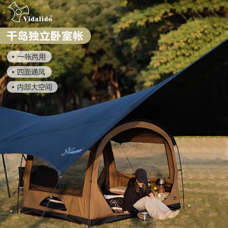 维达利多户外千岛卧室帐露营两用睡帐防风遮阳自立内帐TC棉布帐篷