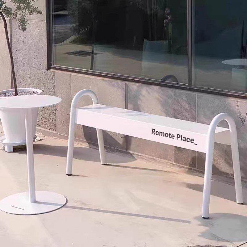 ins韩系网红户外公园长椅奶茶咖啡店健身房休息凳商场铁艺座椅子