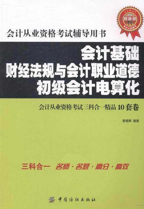 正版会计基础 财经法规与会计职业道德 初级会计电算化会计从业资格考试三科合一索晓辉书店考试中国纺织出版社书籍 读乐尔畅销书