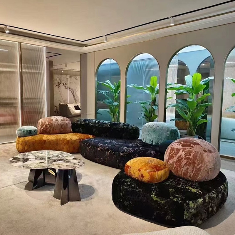 2025新款面料意式大户型模块组合设计师款个性创意鹅卵石多人沙发