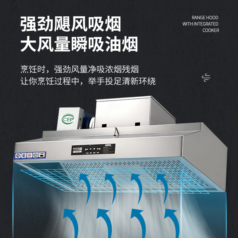 抽油烟机商用不锈钢排烟罩大吸力饭店厨房农村柴火土灶净化一体机