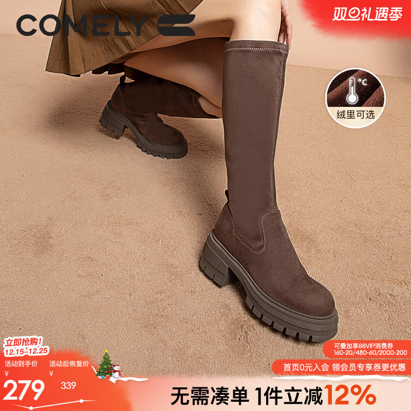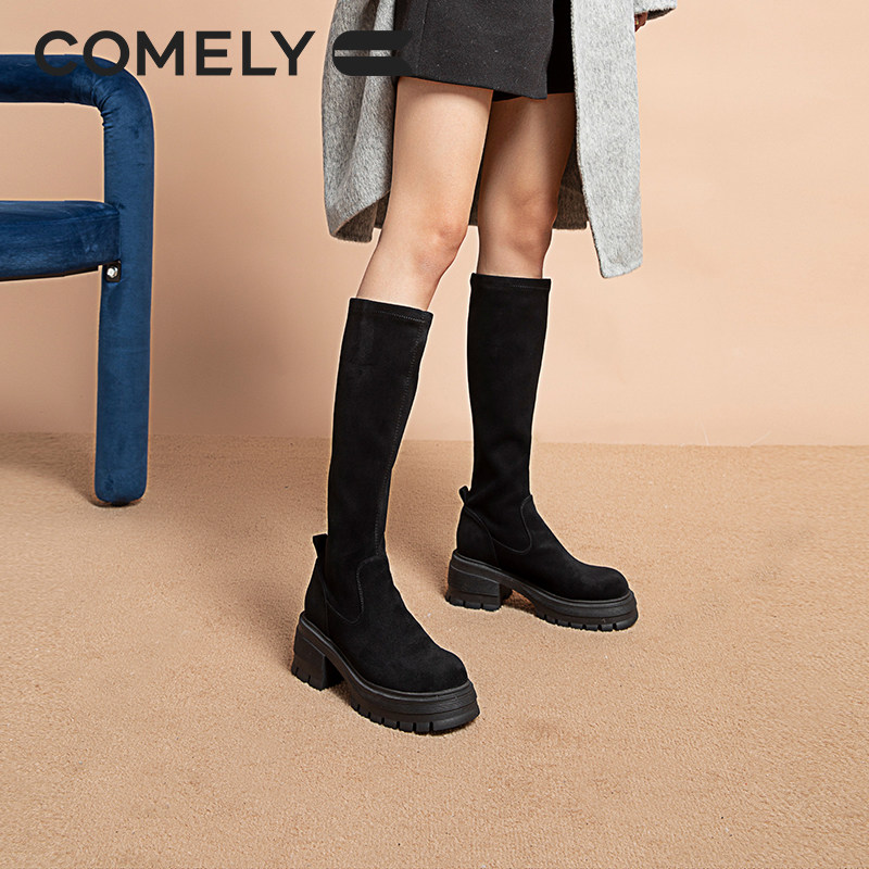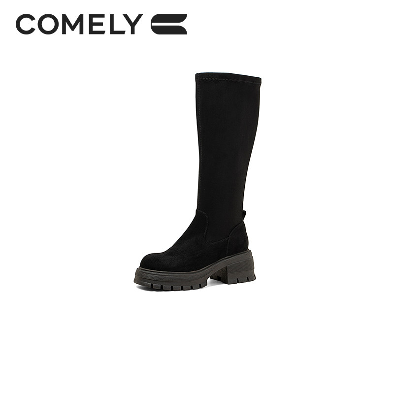 康莉骑士靴女冬季新款长靴粗跟增高显瘦圆头时尚弹力袜靴长筒靴子