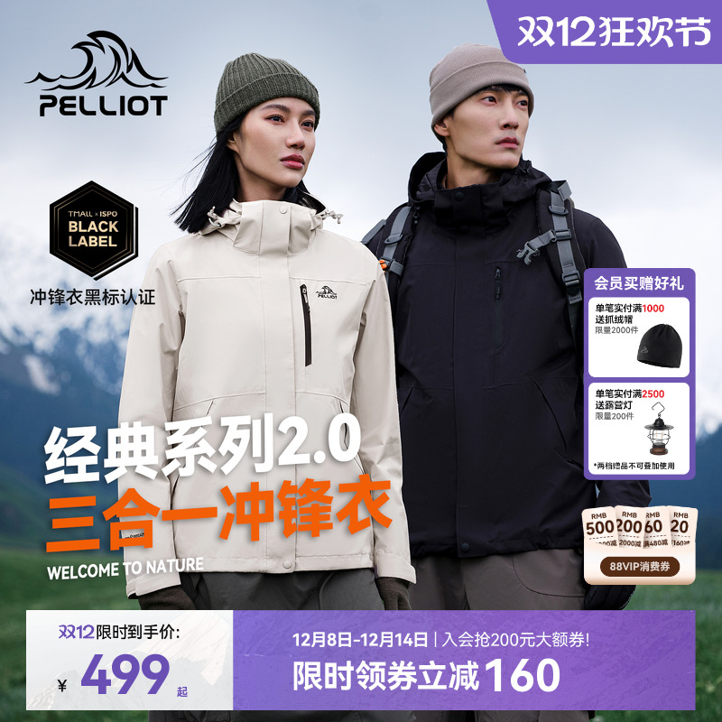 【经典2.0】伯希和户外冲锋衣女三合一鹅绒羽绒服防风防水外套男