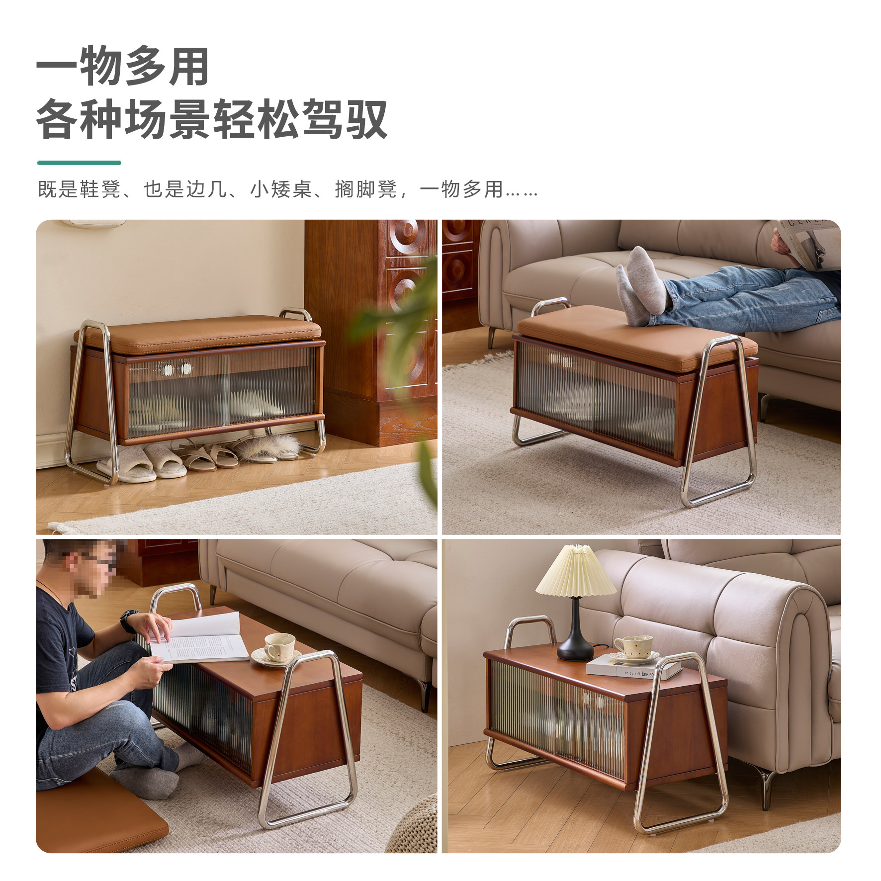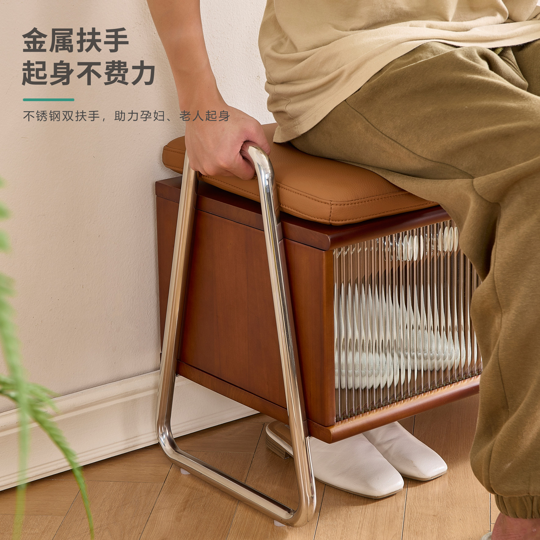 智能换鞋凳不锈钢实木门口家用除臭杀菌烘干入户软包坐凳一体鞋柜