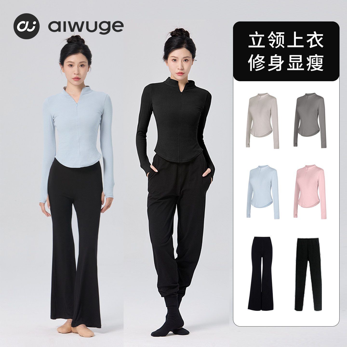 艾舞戈现代舞上衣显瘦瑜伽服女舞蹈运动骑行长袖健身收腰拉链外套