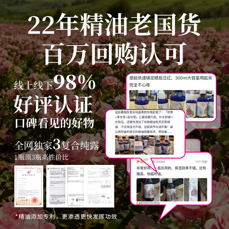 嘉媚乐复合纯露玫瑰薰衣草深层补水保湿清爽湿敷水爽肤水油喷雾水