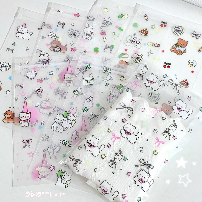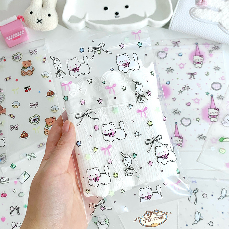 原创新款搠蝶结小狗猫咪收纳袋出卡打包手帐礼品袋糖果零食打包袋