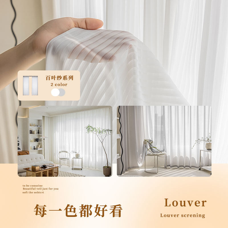 推荐理由:梦幻百叶条纹纱帘窗纱法式阳台纱白纱客厅卧室厚纱窗帘透光不透人