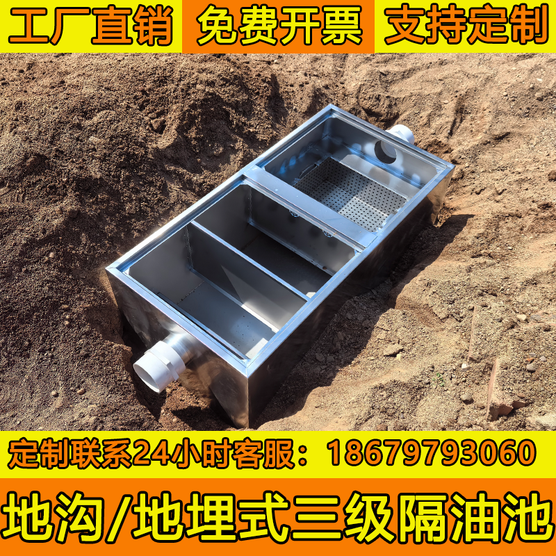 304不锈钢地埋式隔油池餐饮厨房地沟款油水分离器商用三级沉淀池