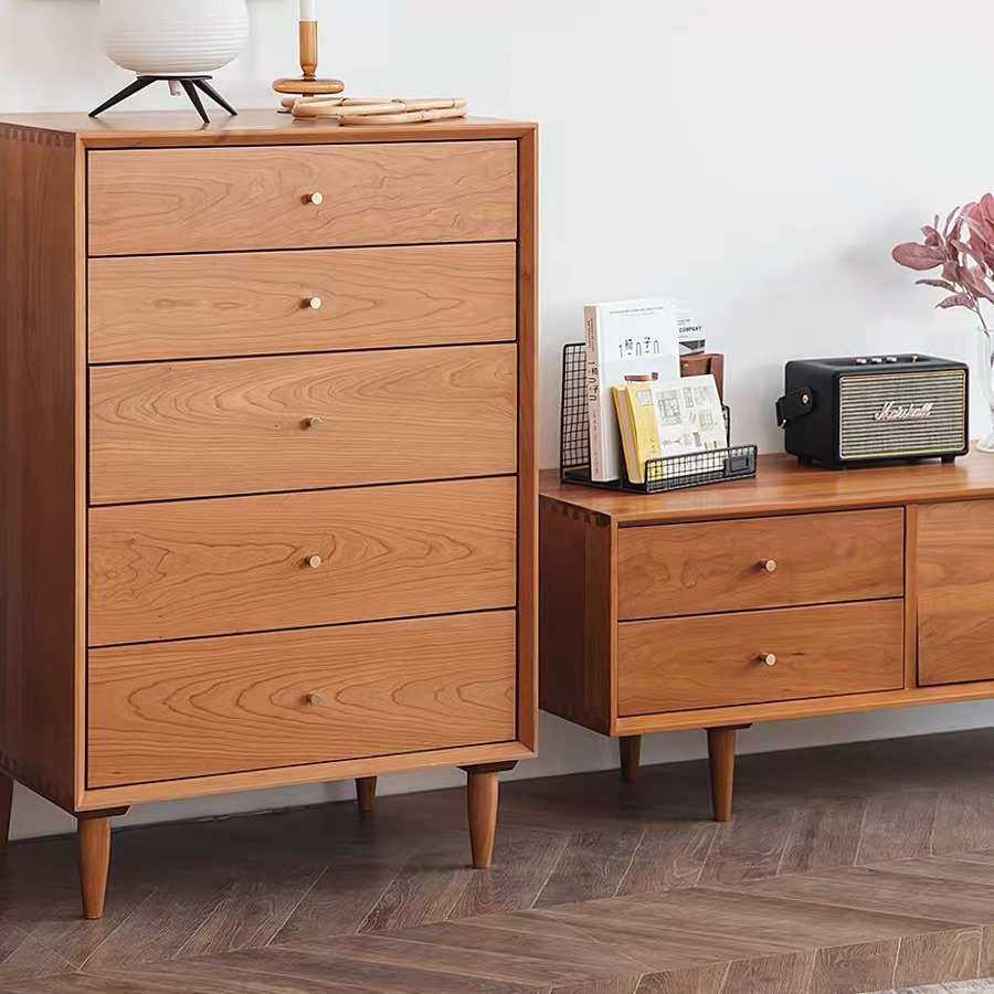大肚五斗柜简约现代储物柜日式白橡木五斗橱北欧收纳餐边柜木蜡油