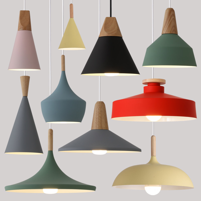 北欧餐饮店铺简约个性单头商用彩色灯罩奶茶店吧台餐厅饭店小吊灯
