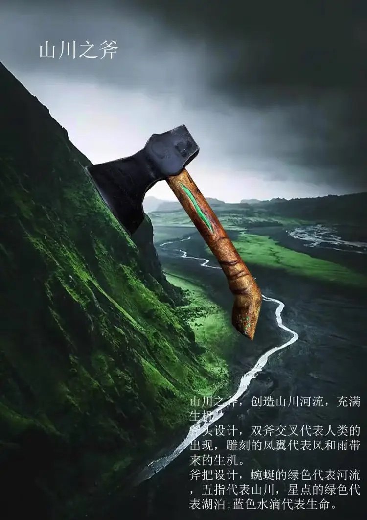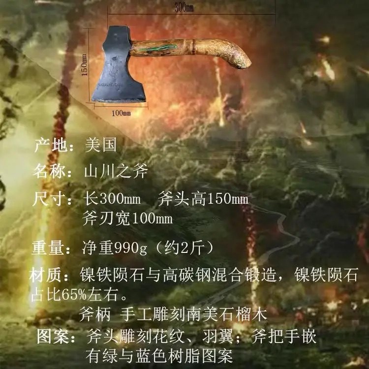 推荐理由:美国进口纯手工雕刻陨石战斧印第安户外求生斧之山川之斧