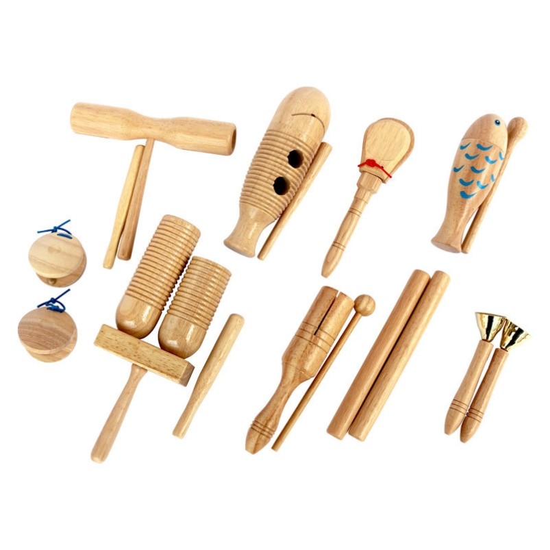 奥尔夫乐器 橡木高低梆子 木鱼蛙 响筒 午板 幼儿教学套件组合
