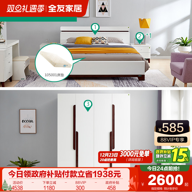 全友家居双人床现代简约卧室家用板式床四门衣柜组合成套家具组合