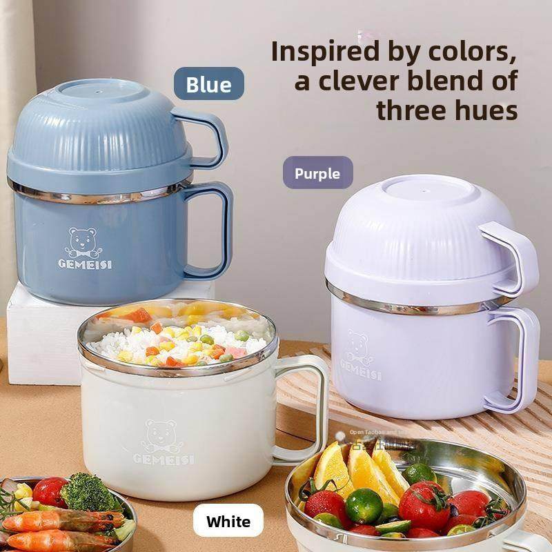 不锈钢快餐杯泡面碗带盖大号学生饭盒上班族宿舍碗筷套装成人餐盒