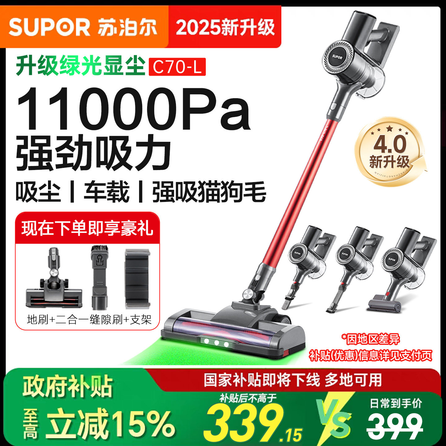 苏泊尔吸尘器家用大吸力无线小型手持轻量除螨地毯猫毛宠物吸尘机