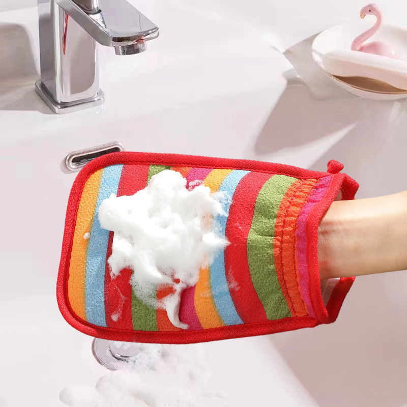 推荐理由:韩式彩虹条不伤肤搓澡巾男女双面搓背洗澡巾沐浴手套粗砂洗澡手套