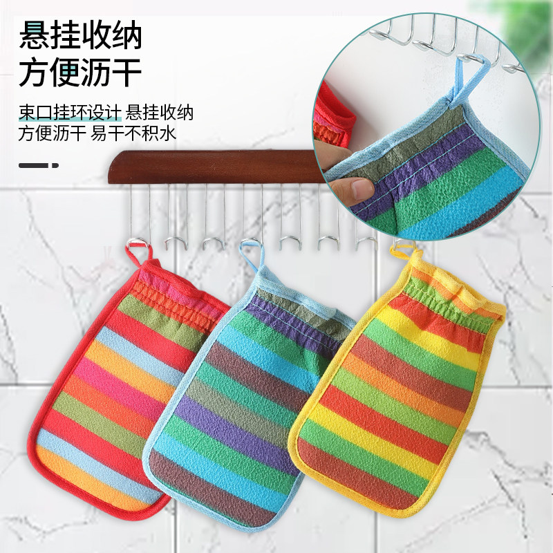 韩式彩虹条不伤肤搓澡巾男女双面搓背洗澡巾沐浴手套粗砂洗澡手套