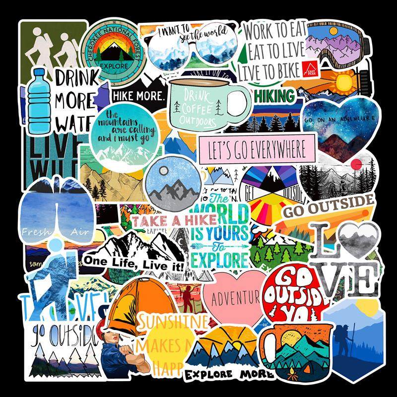 50张野营户外探险徒步登山亚马逊贴纸拉杆箱滑板笔记本涂鸦贴