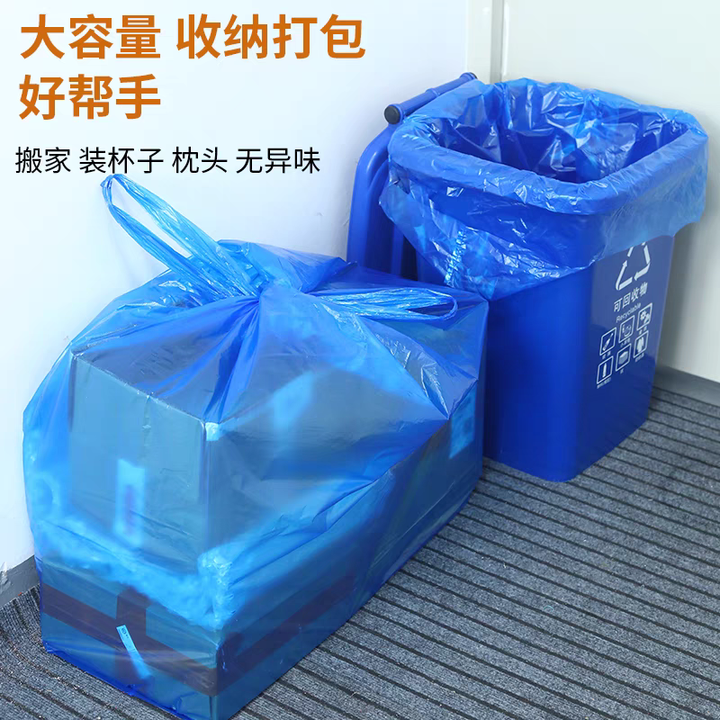 推荐理由:蓝色加厚果蔬购物袋小号方便袋马夹袋手提式塑料袋大号搬家收纳袋
