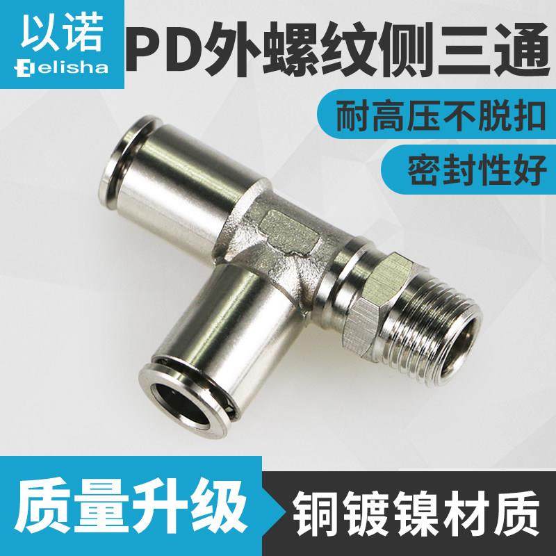 全铜金属气管T型侧外螺纹三通PD4-M5/PD6-01/PD8-02/耐高温耐高压